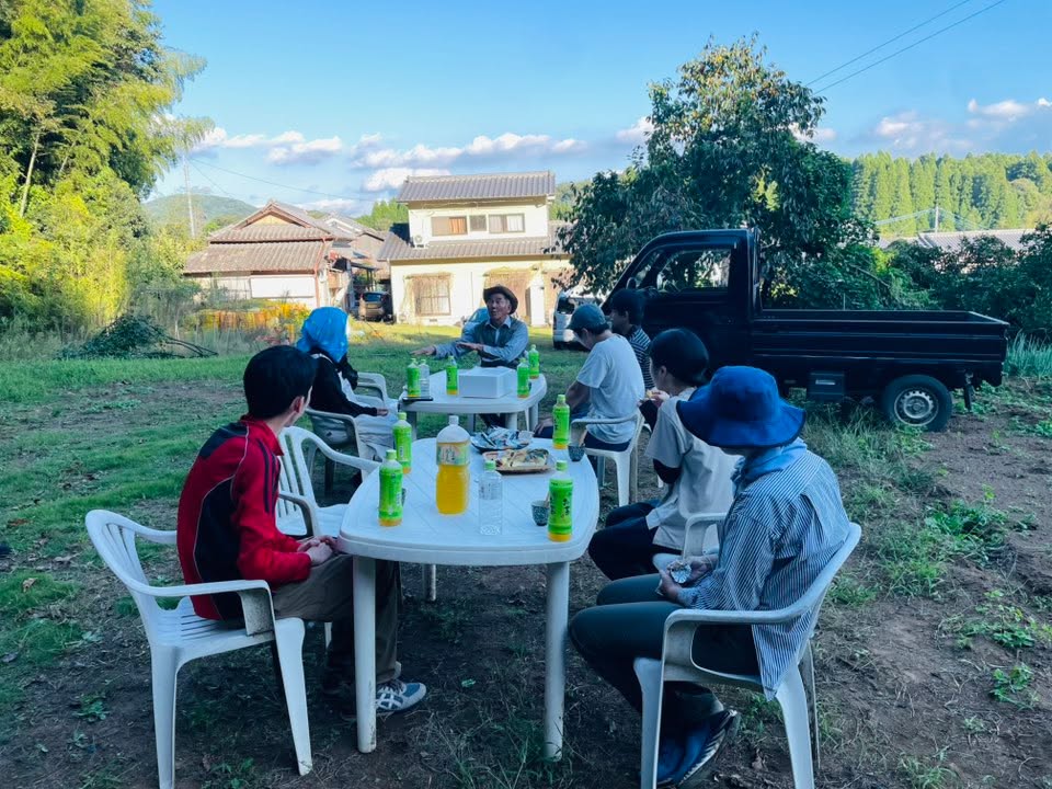 作業後はお手製の庭で、農業のやりがいや大変さ、暮らしについて率直なお話を聞かせていただきました。